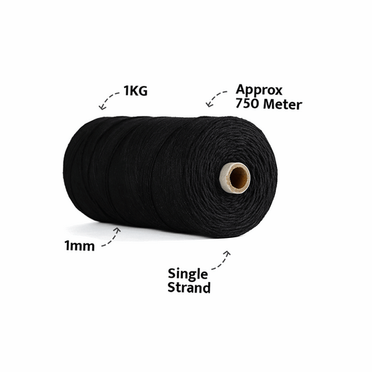 1mm Single Strand | Black | 750 Metres | 1kg Spool | Cotton | No 01