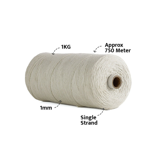 1mm Single Strand | Off White | 750 Metres | 1kg Spool | Cotton |No 04