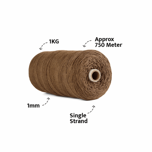 1mm Single Strand | Coffee Brown | 750 Metres | 1kg Spool | Cotton |No 05