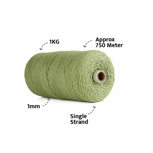 1mm Single Strand | Parrot Green | 750 Metres | 1kg Spool | Cotton | No 13