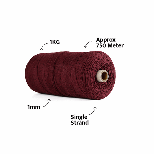 1mm Single Strand | Wine | 750 Metres | 1kg Spool | Cotton | No 29