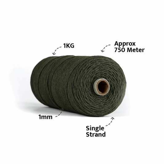 1mm Single Strand | Olive Green | 750 Metres | 1kg Spool | Cotton |No 14
