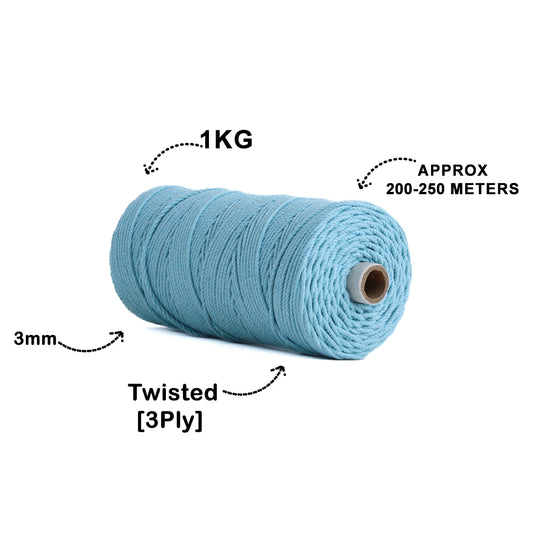 3mm Twisted (3Ply) | Ice Blue | 200 - 250 Metres | 1kg Spool | Cotton | No 32