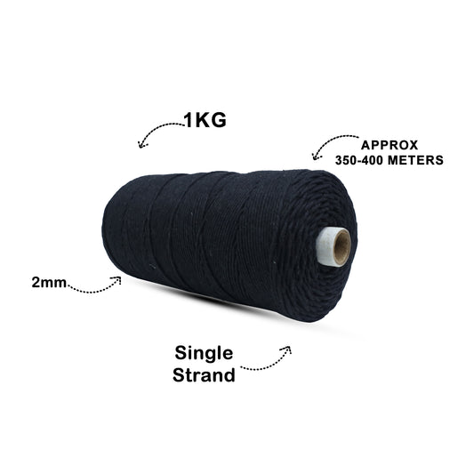 2mm Single Strand | Black | 350 - 400 Metres | 1kg Spool | Cotton | No 01