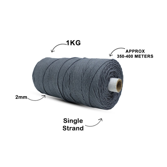5mm Single Strand | Dark Grey | Approx 100 Metres | 1kg Spool | Cotton