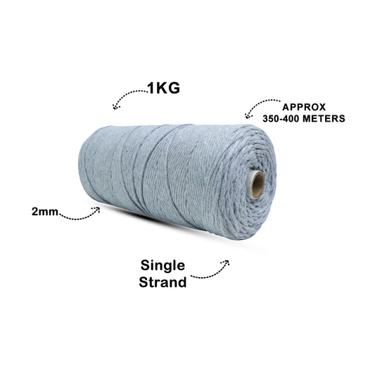 5mm Single Strand | Steel Grey | Approx 100 Metres | 1kg Spool | Cotton