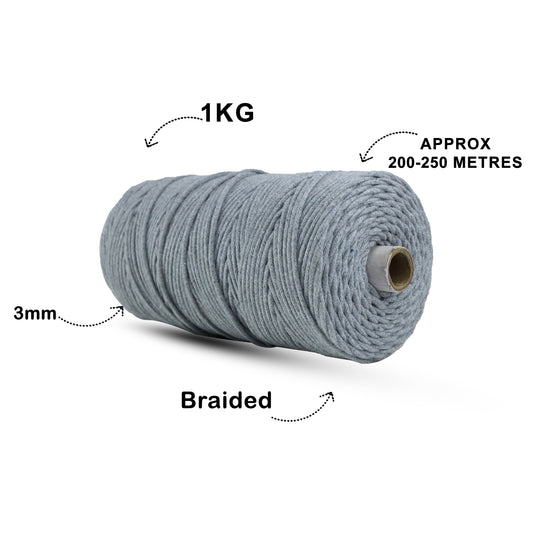 3mm Braided | Steel Grey | 200-250 Meters | 1Kg Spool | Cotton | No 24