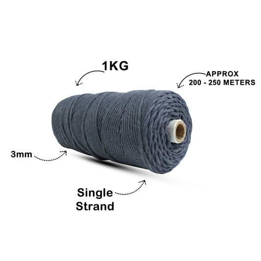 3mm Single Strand | Dark Grey | 200 - 250 Metres | 1kg Spool | Cotton | No 02