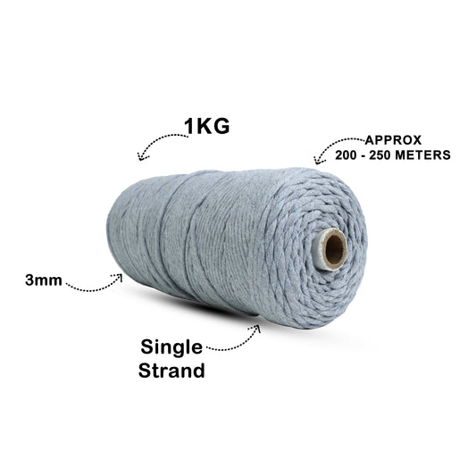 3mm Single Strand | Steel Grey | 200 - 250 Metres | 1kg Spool | Cotton | No 24
