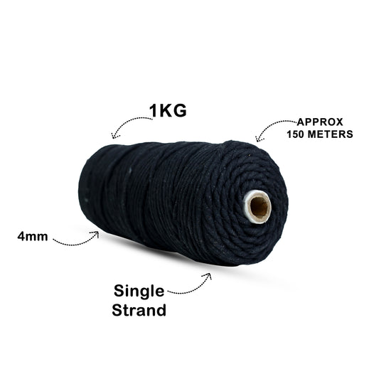 4mm Single Strand | Black | 150 Metres | 1kg Spool | Cotton |No 01