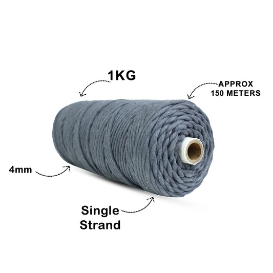 4mm Single Strand | Dark Grey | 150 Metres | 1kg Spool | Cotton |No 02