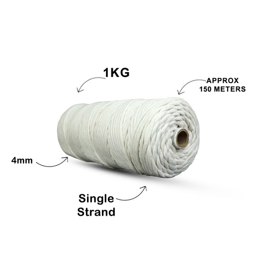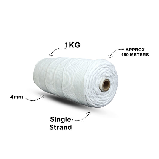 4mm Single Strand | Pure White | 150 Metres | 1kg Spool | Cotton |No 03