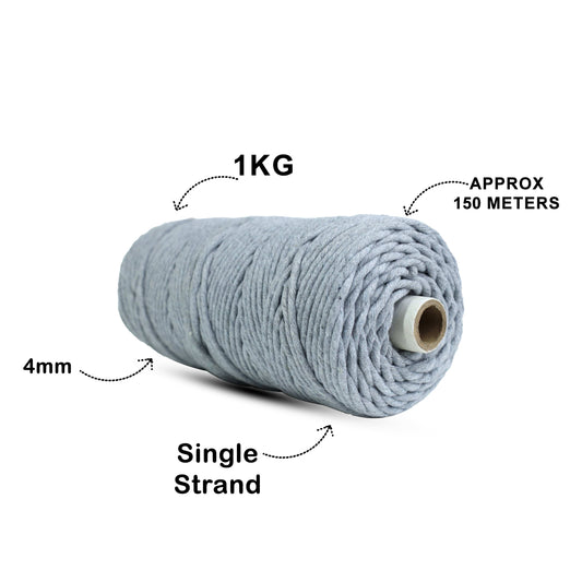 4mm Single Strand | Steel Grey | 150 Metres | 1kg Spool | Cotton |No 24