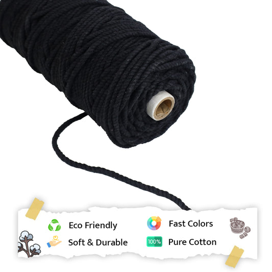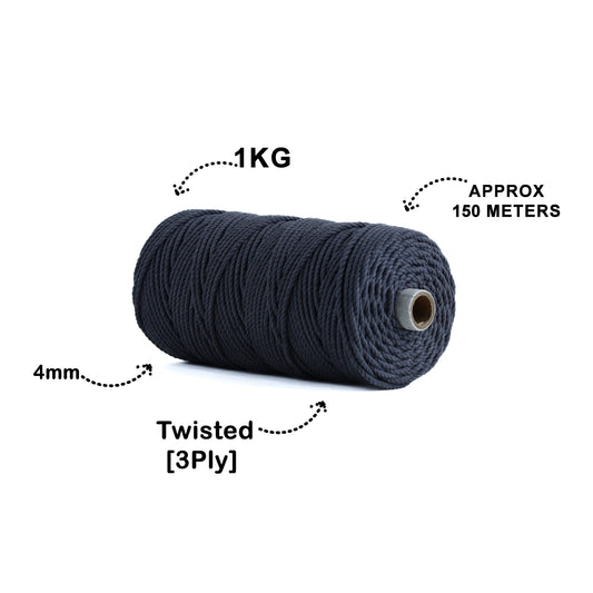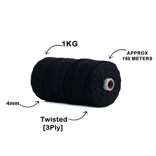4mm Twisted (3Ply) | Black | 150 Metres | 1kg Spool | Cotton | No 01