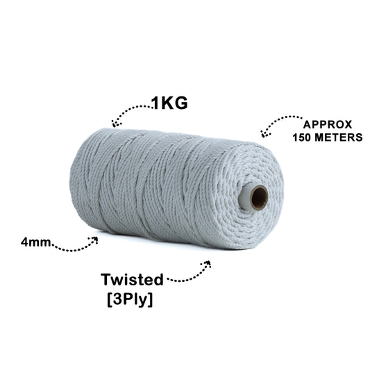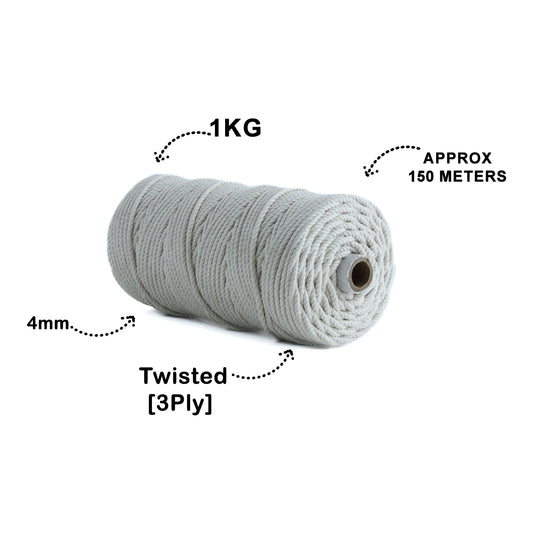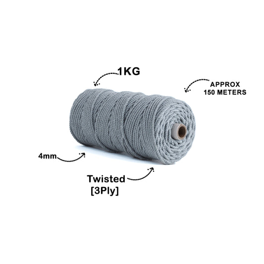4mm Twisted (3Ply) | Steel Grey | 150 Metres | 1kg Spool | Cotton | No 24