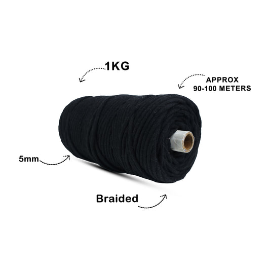 5mm Braided | Black | Approx 100 Metres | 1kg Spool | Cotton | No 01