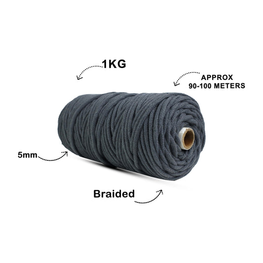 5mm Braided | Dark Grey | Approx 100 Metres | 1kg Spool | Cotton | No 02