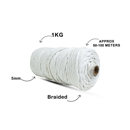 5mm Braided | Pure White | Approx 100 Metres | 1kg Spool | Cotton | No 03