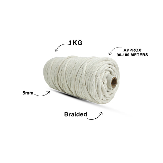 5mm Braided | Off White | Approx 100 Metres | 1kg Spool | Cotton | No 04