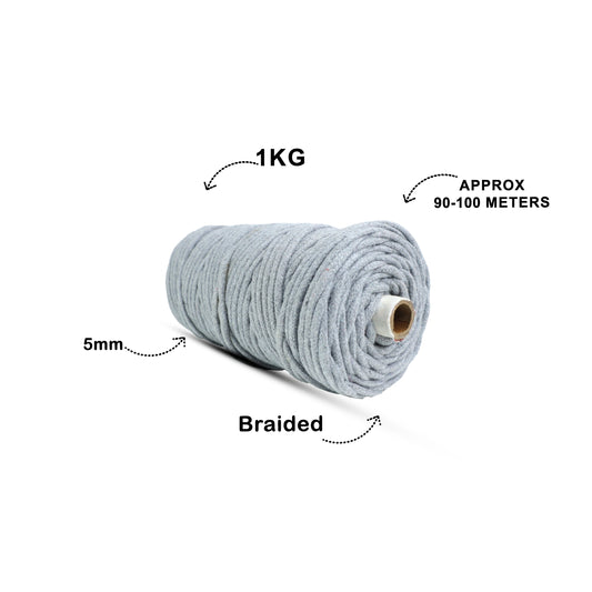 5mm Braided | Steel Grey | Approx 100 Metres | 1kg Spool | Cotton | No 24