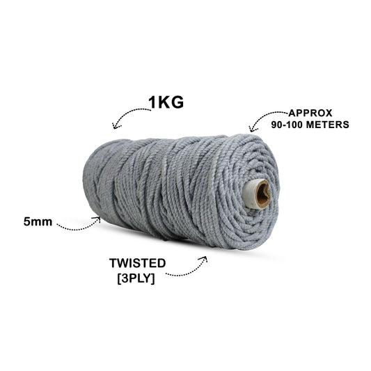 5mm Twisted (3Ply) | Steel Grey | Approx 100 Metres | 1kg Spool | Cotton | No 24