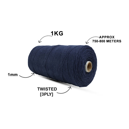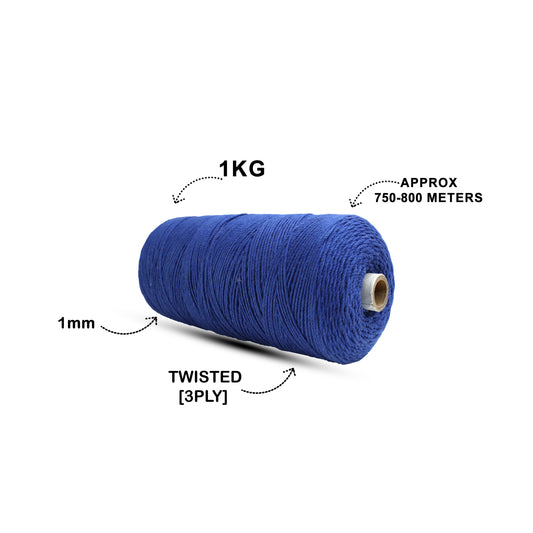 1mm Twisted (3Ply) | Dark Blue | 750 Metres | 1kg Spool | Cotton | No 27