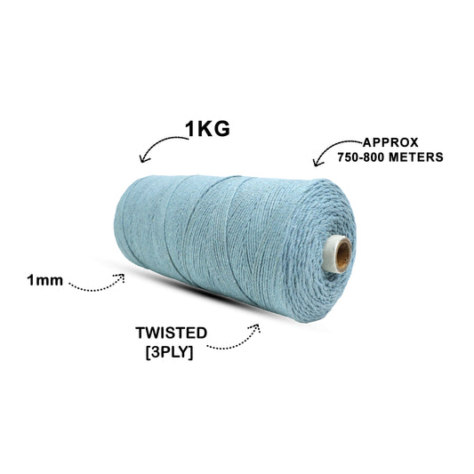 1mm Twisted (3Ply) | Ice Blue | 750 Metres | 1kg Spool | Cotton | No 32