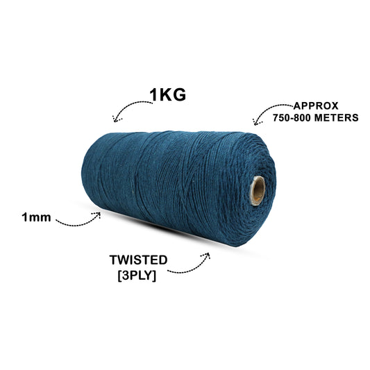 1mm Twisted (3Ply) | Teal Blue | 750 Metres | 1kg Spool | Cotton | No 39