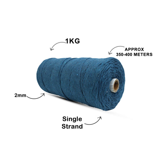 2mm Single Strand | Sapphire Blue | 350 - 400 Metres | 1kg Spool | Cotton | No 20