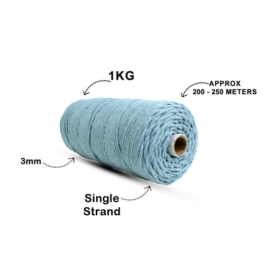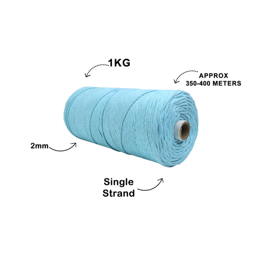 3mm Single Strand | Ice Blue | 200 - 250 Metres | 1kg Spool | Cotton | No 32