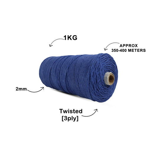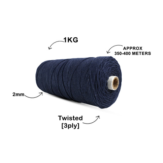 2mm Twisted (3Ply) | Dark Blue | 350 - 400 Metres | 1kg Spool | Cotton | No 27