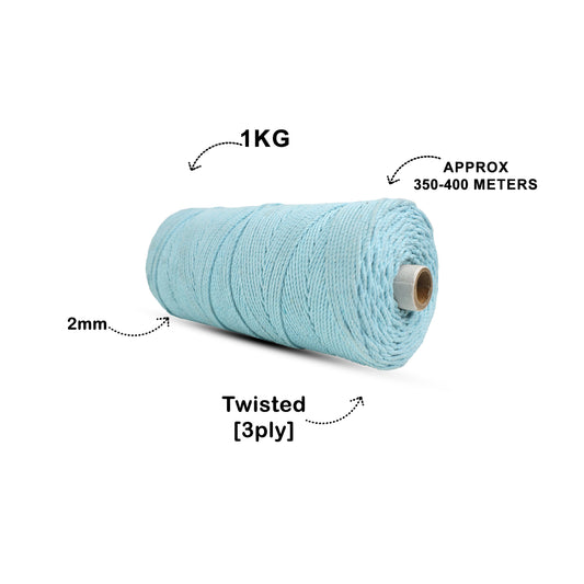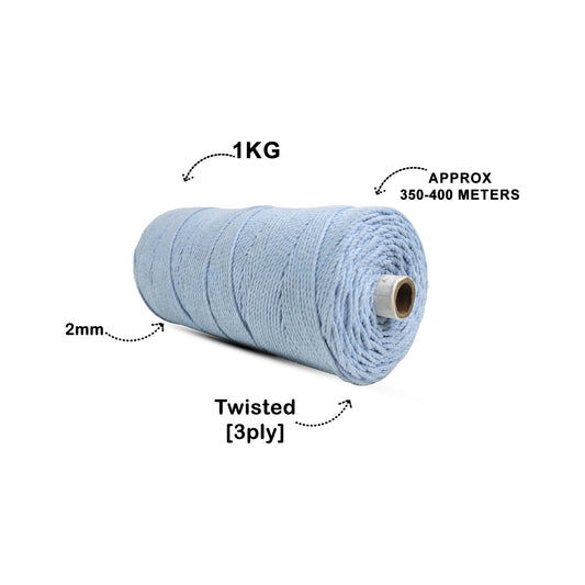 2mm Twisted (3Ply) | Ice Blue | 350 - 400 Metres | 1kg Spool | Cotton | No 32