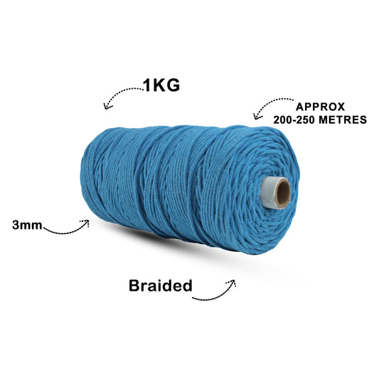 3mm Braided | Sapphire Blue | 200-250 Meters | 1 Kg Spool | Cotton | No 20