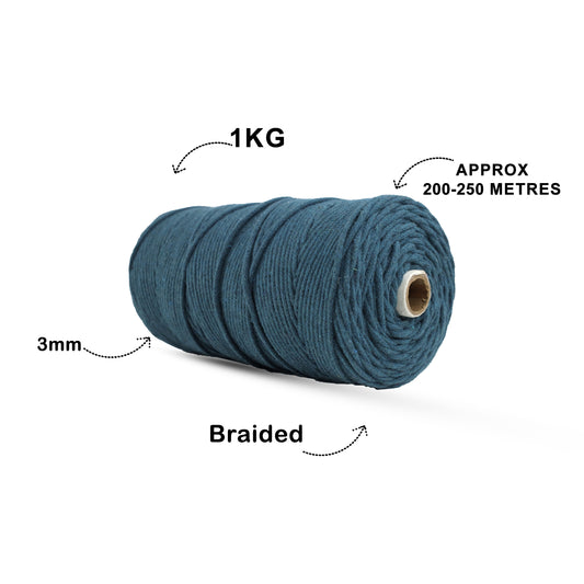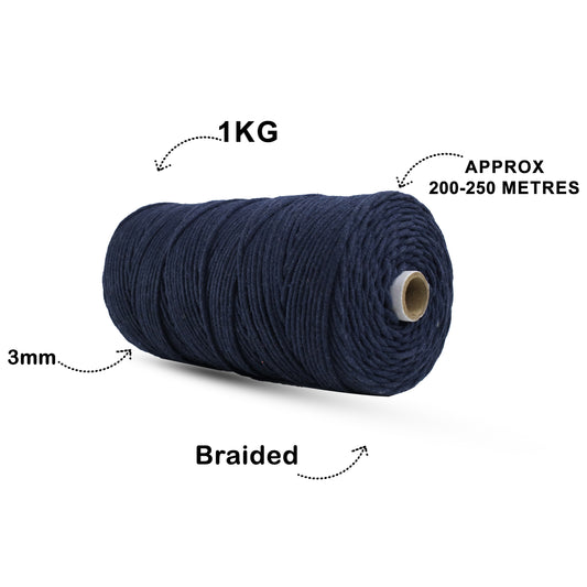 3mm Braided | Dark Blue | 200-250Metres | 1 Kg Spool | Cotton | No 27