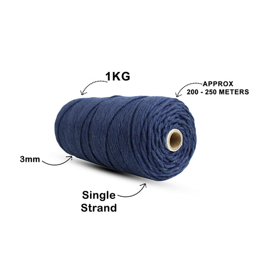 3mm Single Strand | Dark Blue | 200 - 250 Metres | 1kg Spool | Cotton | No 27