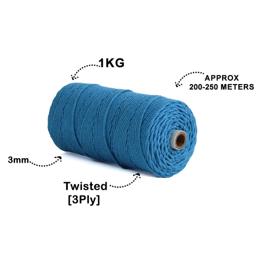 3mm Twisted (3Ply) | Teal Blue | 200 - 250 Metres | 1kg Spool | Cotton | No 39