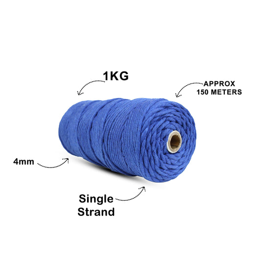 4mm Single Strand | Sapphire Blue | 150 Metres | 1kg Spool | Cotton |No 20