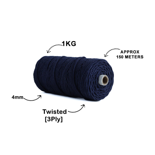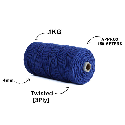 4mm Twisted (3Ply) | Dark Blue | 150 Metres | 1kg Spool | Cotton | No 27