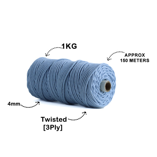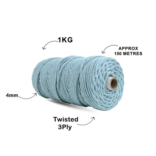 4mm Twisted (3Ply) | Ice Blue | 150 Metres | 1kg Spool | Cotton | No 32