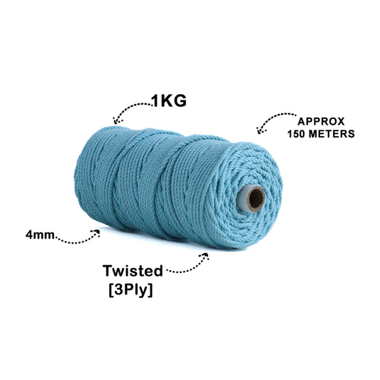 4mm Twisted (3Ply) | Teal Blue | 150 Metres | 1kg Spool | Cotton | No 39