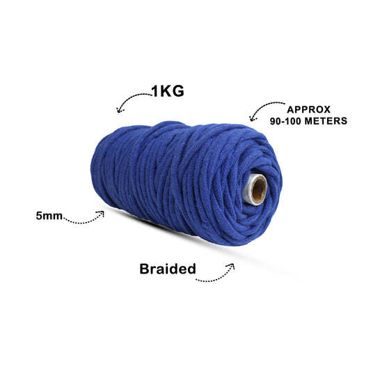 5mm Braided | Dark Blue | Approx 100 Metres | 1kg Spool | Cotton | No 27