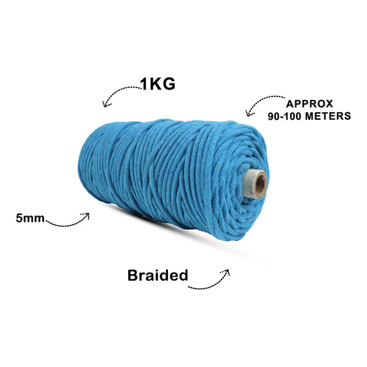 5mm Braided | Bright Blue | Approx 100 Metres | 1kg Spool | Cotton | No 22