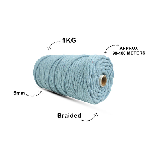 5mm Braided | Mint Blue | Approx 100 Metres | 1kg Spool | Cotton | No 25