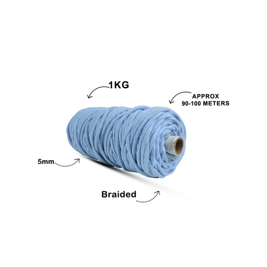 5mm Braided | Ice Blue | Approx 100 Metres | 1kg Spool | Cotton | No 32