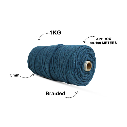 5mm Braided | Teal Blue | Approx 100 Metres | 1kg Spool | Cotton | No 39