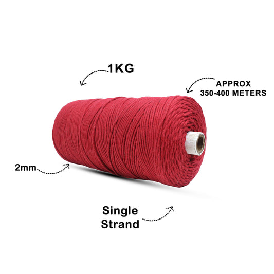 2mm Single Strand | Wine | 350 - 400 Metres | 1kg Spool | Cotton | No 29