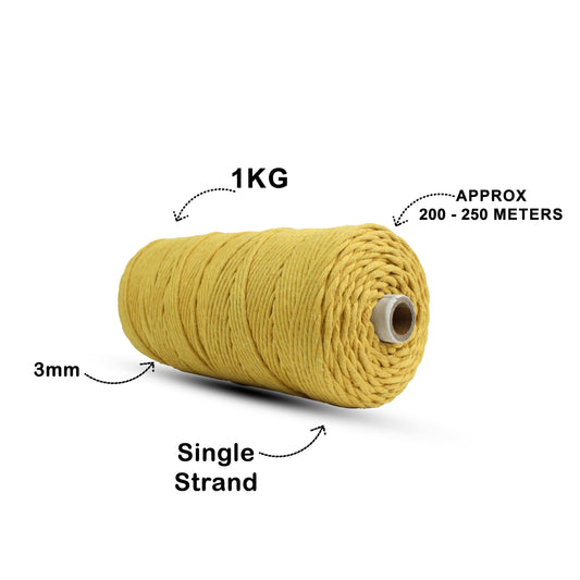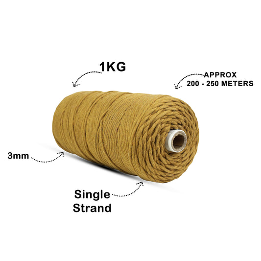 3mm Single Strand | Mustard | 200 - 250 Metres | 1kg Spool | Cotton | No 07