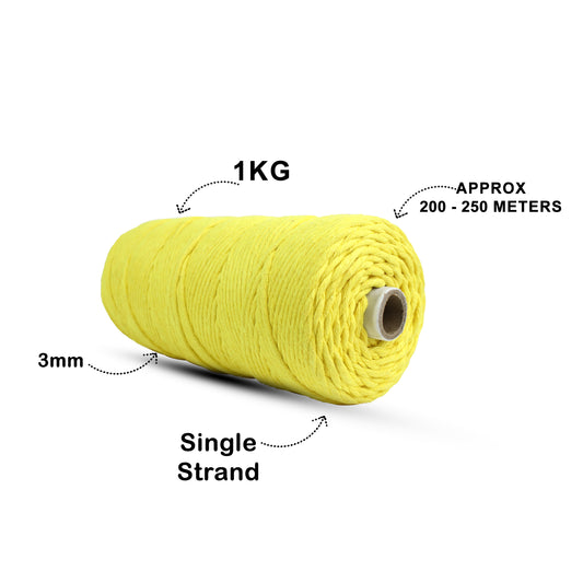 3mm Single Strand | Yellow | 200 - 250 Metres | 1kg Spool | Cotton | No 08