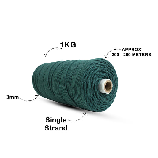 3mm Single Strand | Forest Green | 200 - 250 Metres | 1kg Spool | Cotton | No 10