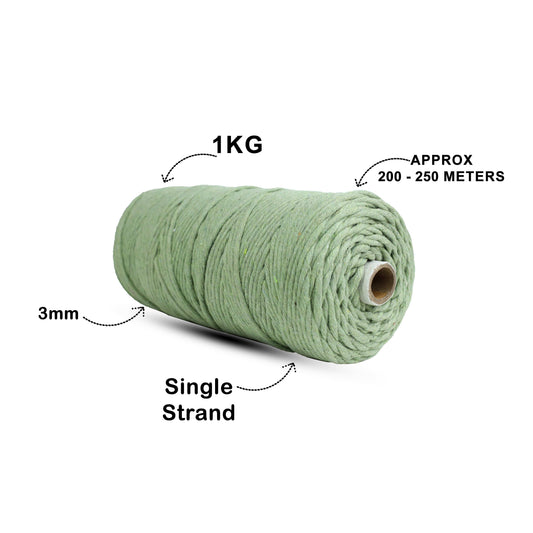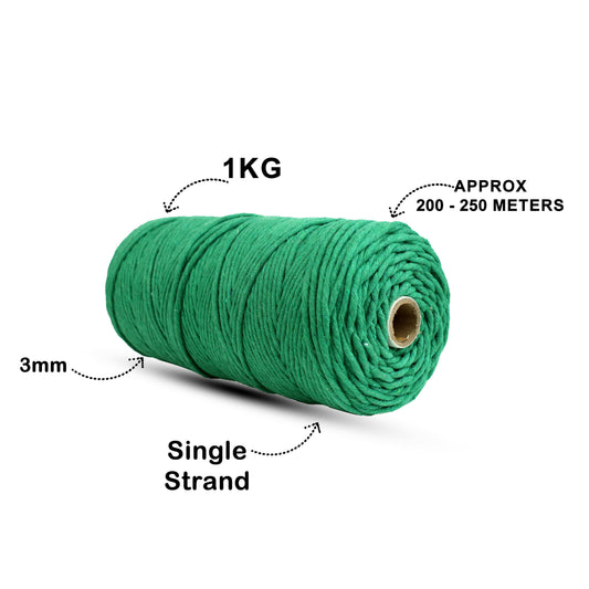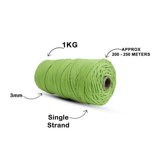 3mm Single Strand | Parrot Green | 200 - 250 Metres | 1kg Spool | Cotton | No 13